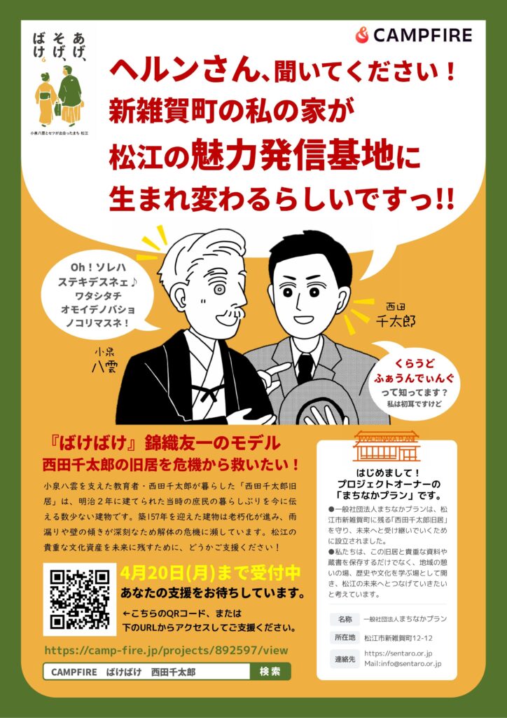 「瓦プロジェクト」は、松江市の歴史的建物・西田千太郎旧家の屋根修繕を目的とした保存活動です。